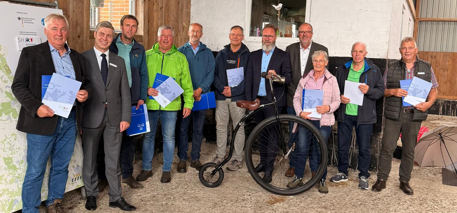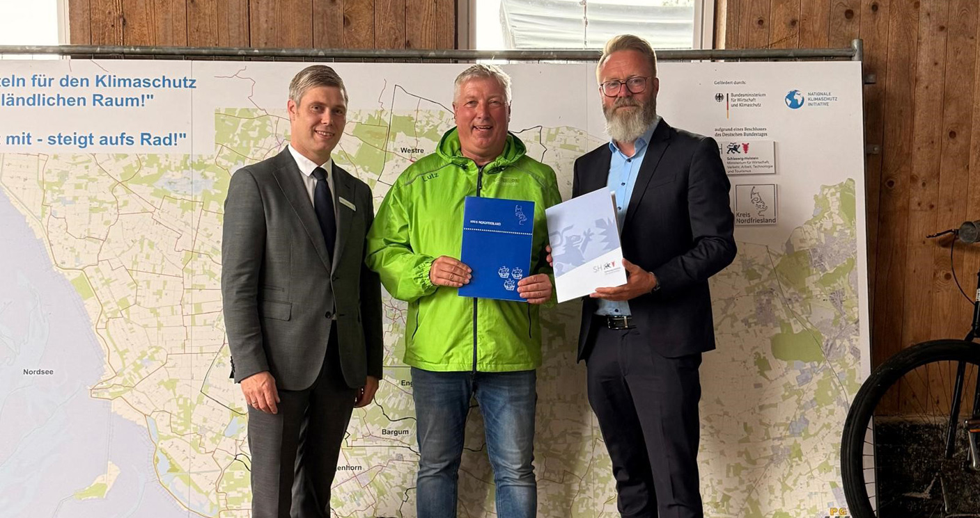 Sieben nordfriesische Gemeinden haben sich für das Projekt "Aufsatteln für den Klimaschutzt im ländlichen Raum" zusammengetan. Sie wollen damit den Radverkehr in ihrer Region nachhaltig fördern. Die Kommunen liegen innerhalb der zwei Ämter Mittleres Nordfriesland (Bargum, Langenhorn) sowie Südtondern (Enge-Sande, Risum-Lindholm, Westre, Ladelund, Bramstedtlund).